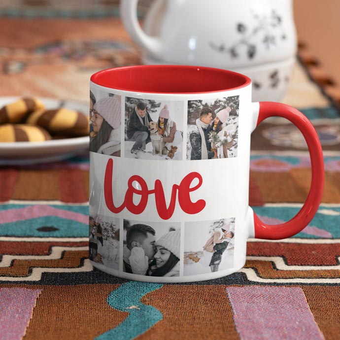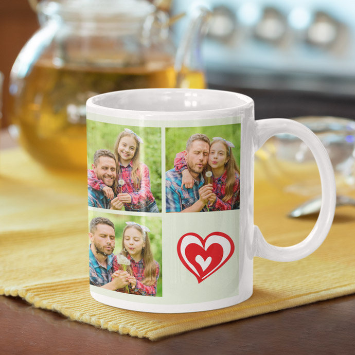 Choose from a variety of designs and add up to 14 of your favourite photos to your mug.